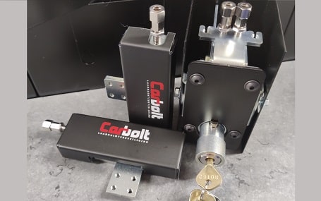 De Carbolt 103 is een slot voor maximaal twee laadruimtedeuren (zijdeur en achterdeuren of klep). De basisunit bedien je in de cabine. Door het indrukken van een cilinder gaan de deuren op slot. Door met een sleutel de cilinder weer te ‘openen’ gaan de sloten weer open. Het anti-diefstalslot is niet uit te boren. Bekijk de promotievideo die meer uitleg geeft over de voordelen van dit systeem.